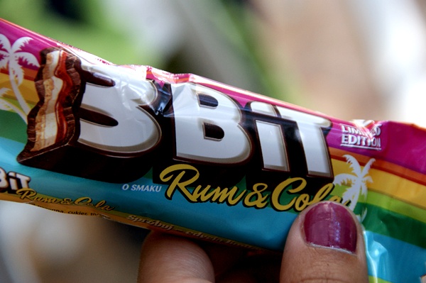 W Krynicy w sklepie zobaczyłam ciekawy kolorowy baton.Okazało się,że był to 3bit o smaku rumu i coli.Na początku mnie obrzydził,więc go odłożyłam,ale potem postanowiłam spróbować.I był OKROPNY!