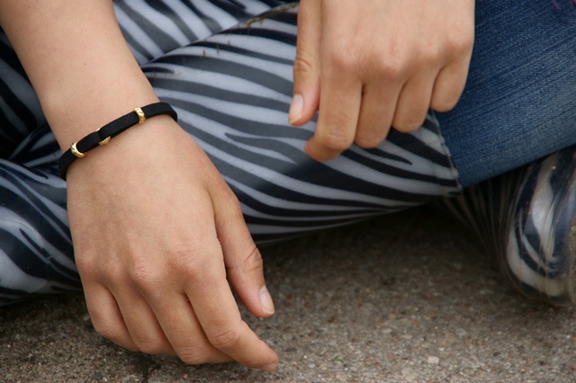 sweter-sh | spodnie-Reserved | kalosze-CTO | bransoletka-Clover |